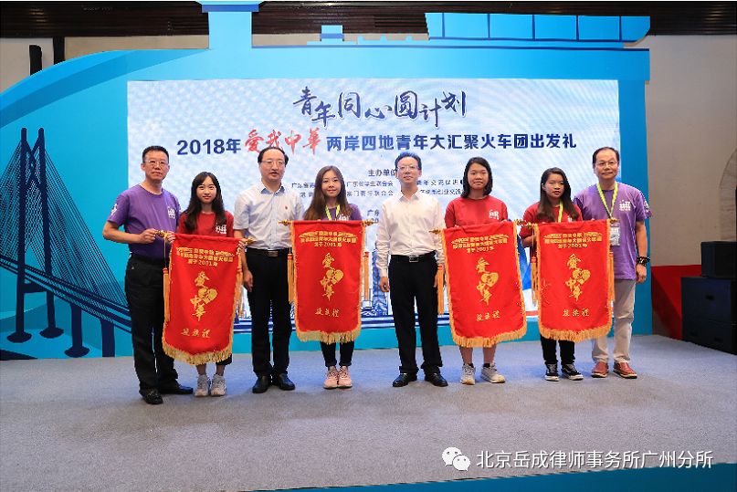 7月23日,由广东省青年联合会、香港青年交流促进联会、澳门青年联合会等多家单位联合主办2018年爱我中华两岸四地青年大汇聚火车团出发礼暨粤港澳大湾区发展前景与青年机遇讲座在广州南沙举行。团省委副书记、省青联主席张志华,南沙区委常委、组织部部长朱承志,省港澳办等单位有关负责同志、省青联委员50人、2018年火车团嘉宾代表及粤港澳台学生共计255人参加。其中,北京市岳成(广州)律师事务所主任王静巍律师作为广东省青年联合会常委兼法律新闻界别副主任的身份受邀出席了此次活动。