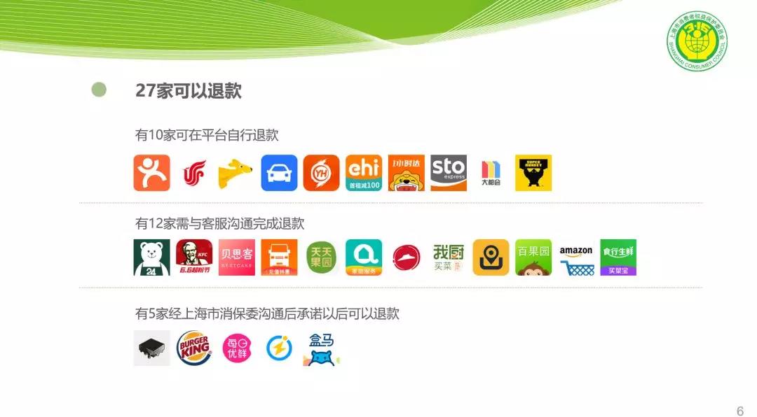 上海消保委工作人员:其中10家平台可在平台自行退款,也就是说它在平台实际上是有退款入口的。12家需要和客服进行沟通,实际上门槛就比较高了。还有5家本来是不能退的,但是经上海消保委沟通后承诺可以退款。